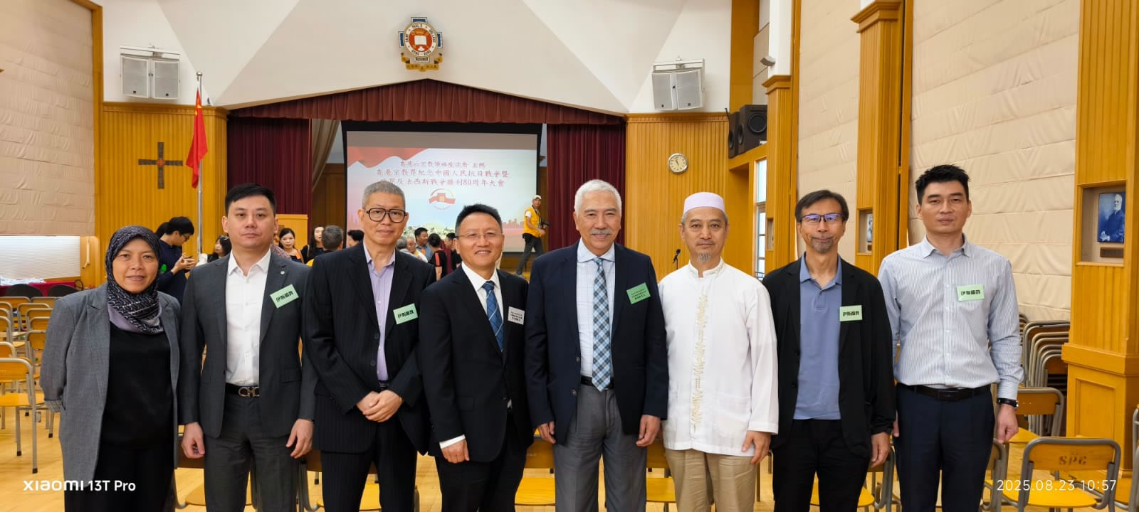 2025年8月23日(星期六)早上十時,香港六宗教領袖座談會於香港聖保羅書院舉行「香港宗教界紀念中國人民抗日戰爭暨世界反法西斯戰爭勝利80周年大會」。香港六宗教領袖聯同主禮嘉賓署理民政及青年事務局局長梁宏正與近200位宗教同仁一同銘記歷史、緬懷先烈。伊斯蘭教代表中華回教博愛社脫瑞康主席在會中提到我國同胞們的犧牲與奉獻,換來現代世界及宗教和平。祈願祖國繁榮昌盛,香港和諧安定,世界共享太平。