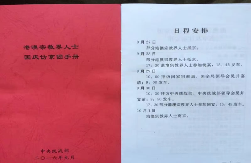 2016年國慶期間,脫瑞康副主席隨“港澳宗教界人士國慶訪京團”一起訪問北京,訪京團先後拜訪國家宗教局和中央統戰部,並與領導座談交流,30日晚,受國務院總理李克強邀請,六宗教首席代表參加了“慶祝中華人民共和國成立67週年招待會。”
