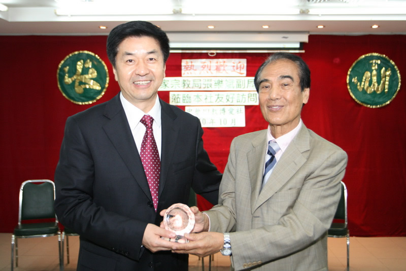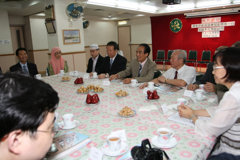 2010年10月8日下午,中國國家宗教局副局長張樂斌一行到訪中國華回教博愛社,脫志賢主席率眾相迎,熱情接待。
