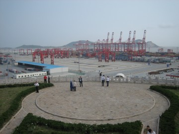 上海伊協在有關部門的協助下安排我們驅車行駛在長達32.5公里的東海大橋,車在橋上奔馳,直達洋山深水港第一及二號貨櫃碼頭,目睹了祖國建設這一巨大之工程,令人興奮,更感祖國經濟發展潛力高不可測。