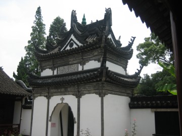 我們第三天早上出發到松江清真寺,該寺位於上海市郊區,離市中心一個多小時車程。松江清真寺始建於元代,有六百多年歷史,充滿園林景色,保存得很好。當天該寺楊健雄主任和蒲冠雄阿訇介紹該寺時稱,其實先有松江清真寺,才有上海,該寺為元代時當地的管理長官始建的,因他亦是穆斯林,他歸真後,埋葬於此。