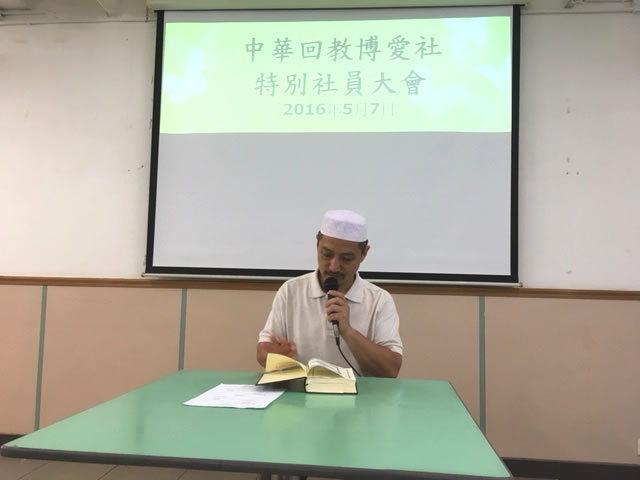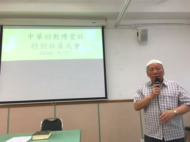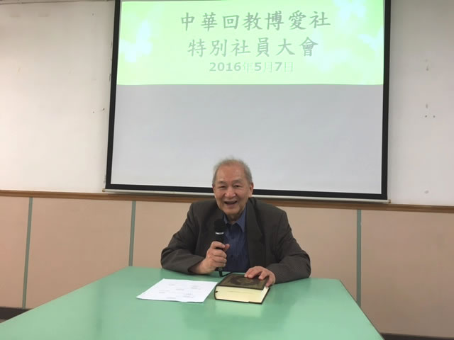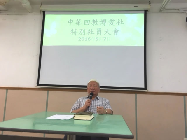 2016年5月7日,中華回教博愛社召開特別社員大會,大會首先由楊興文阿訇誦讀古蘭天經,薩主席和楊秘書長分別做了作了熱情洋溢的發言,對過去兩年的工作作了簡單回顧,最後,出席者一致通過現任全體執委續任新一界執委。